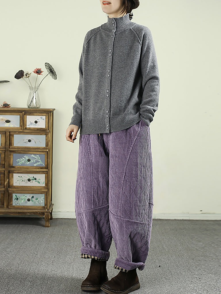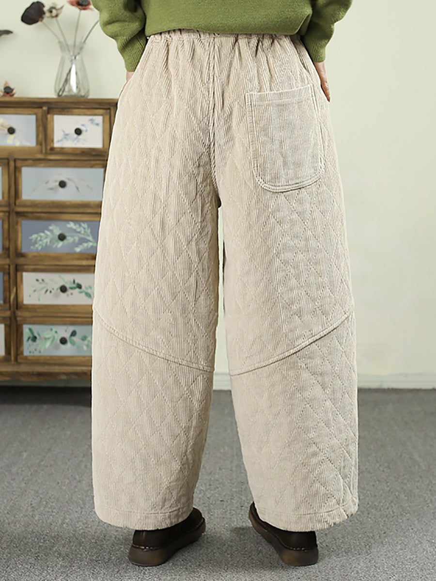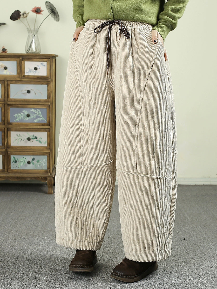 Pantalones harén acolchados de pana de color puro retro de invierno para mujer
