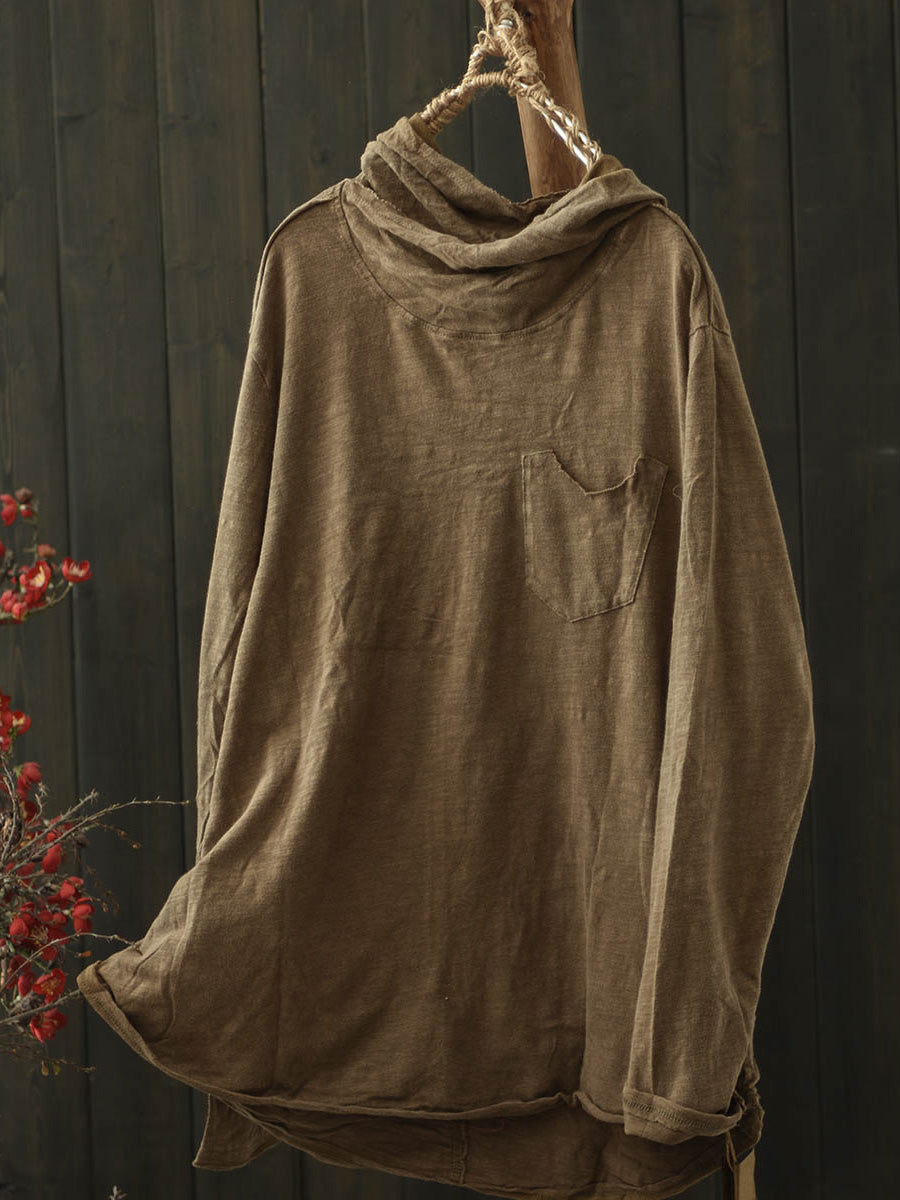 Blusa con capucha de algodón de color puro retro de invierno para mujer