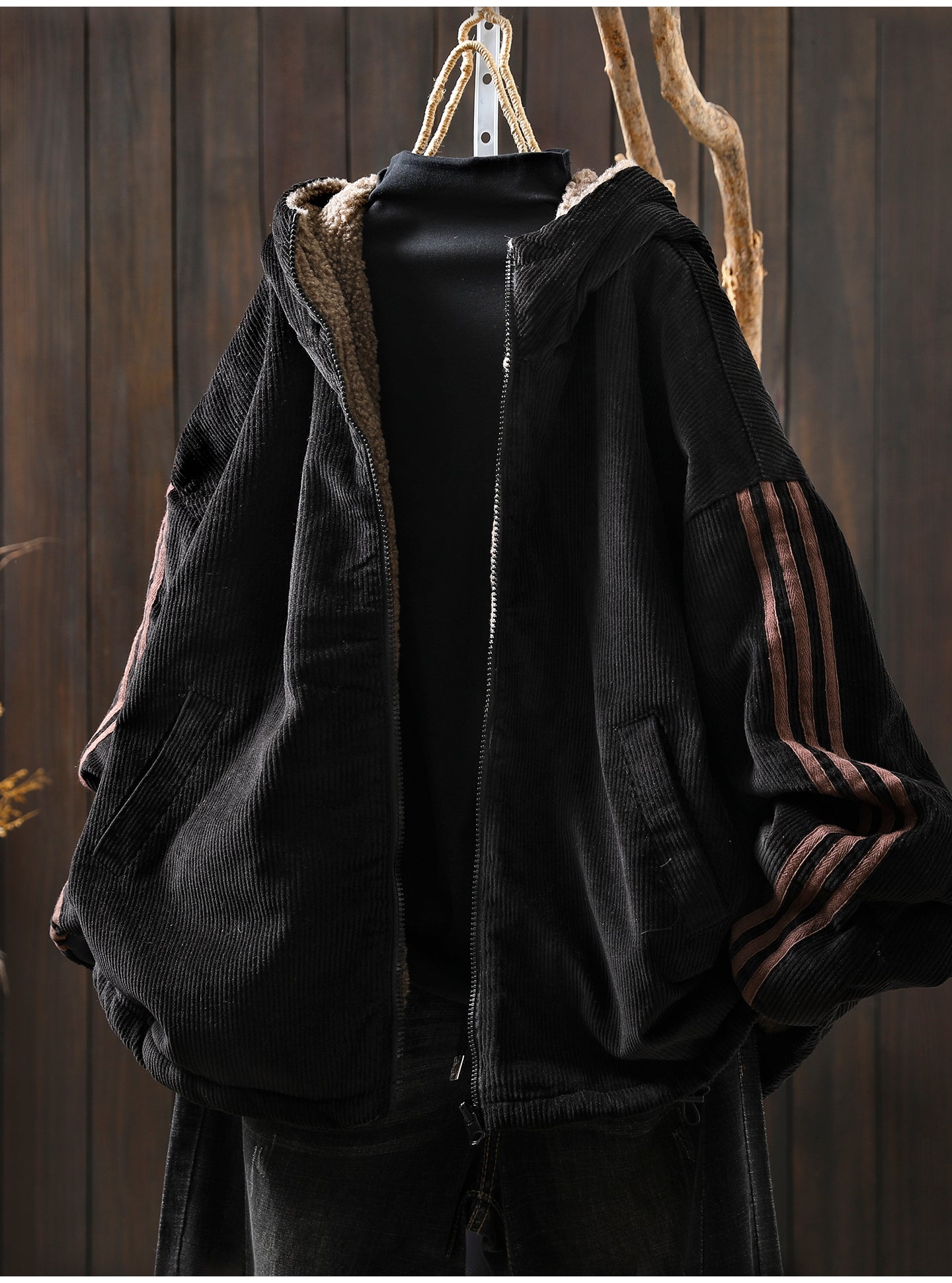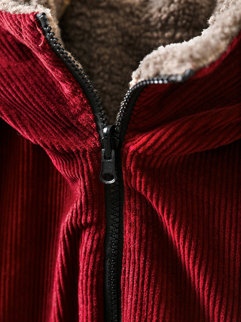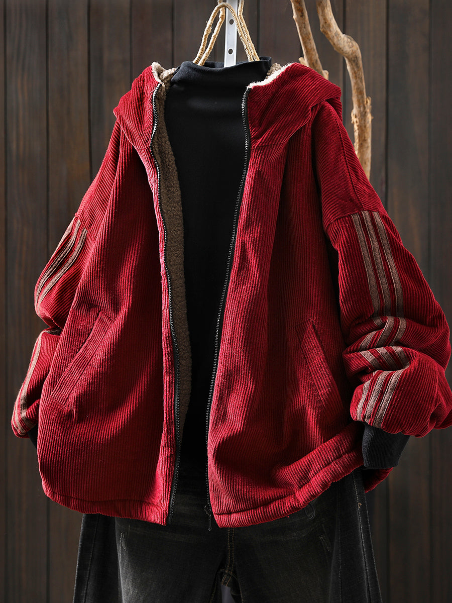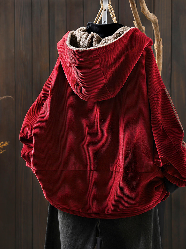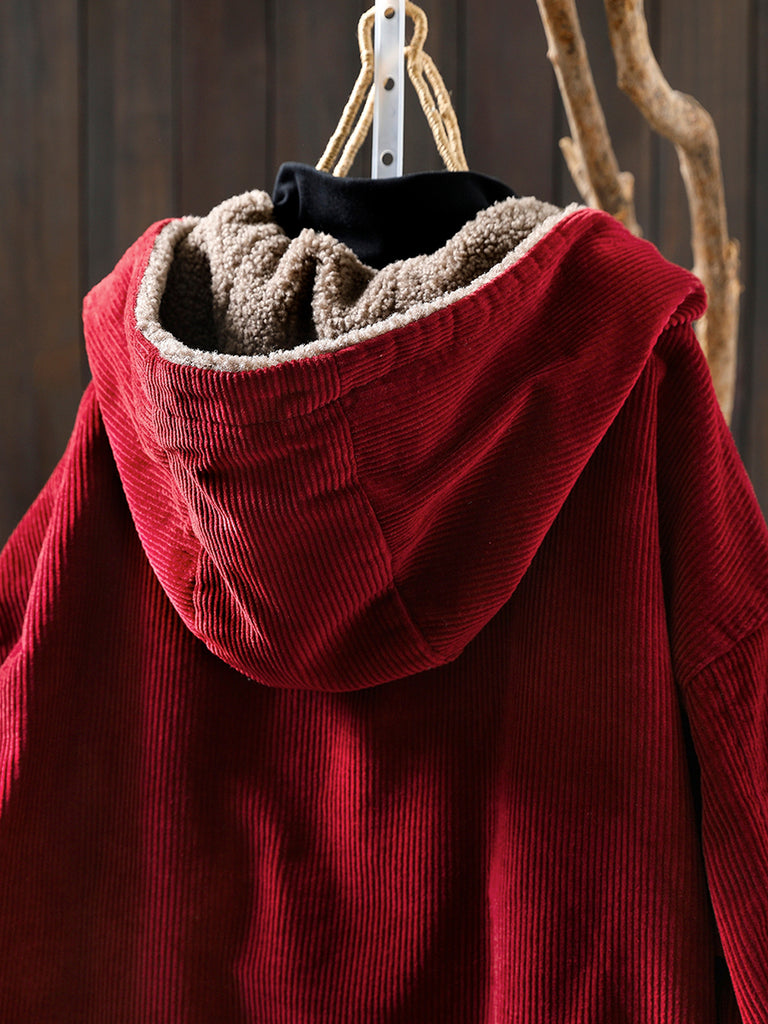 Abrigo de pana con capucha y forro polar de color puro retro de invierno para mujer