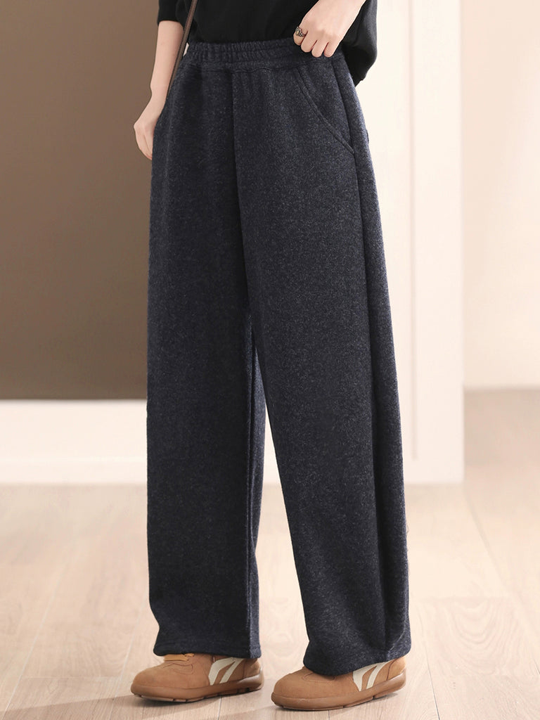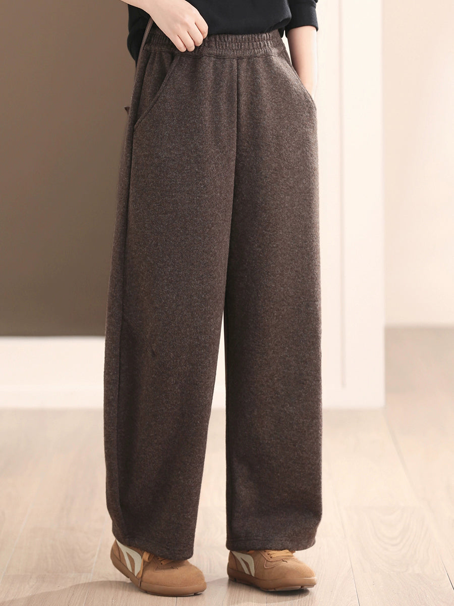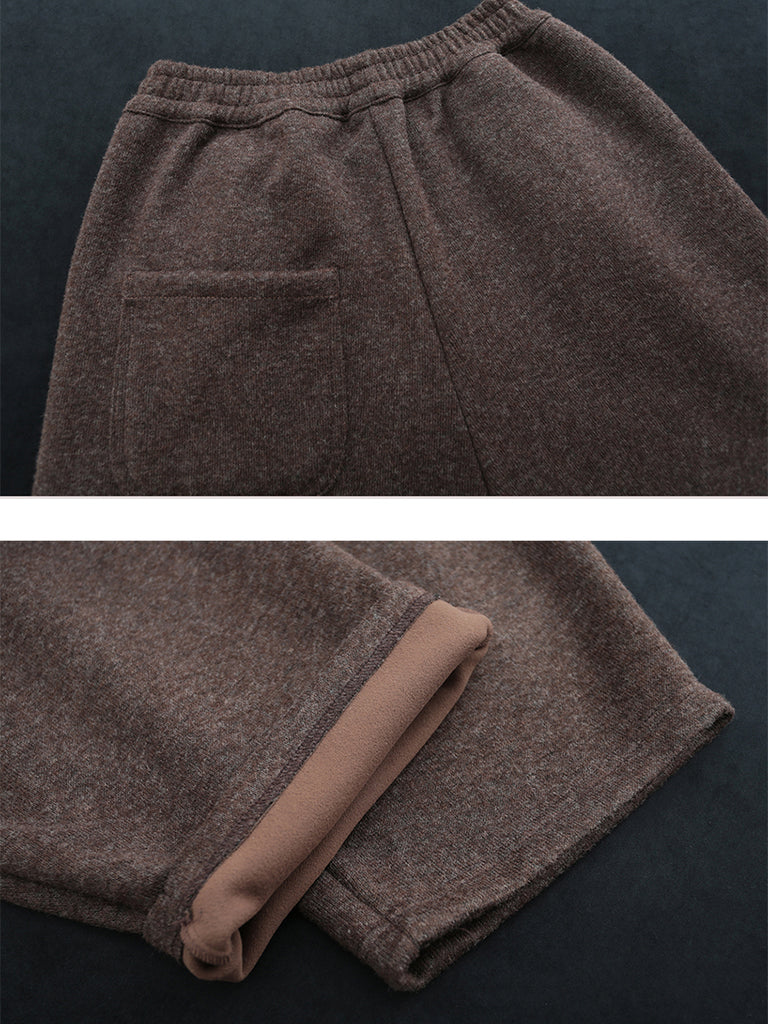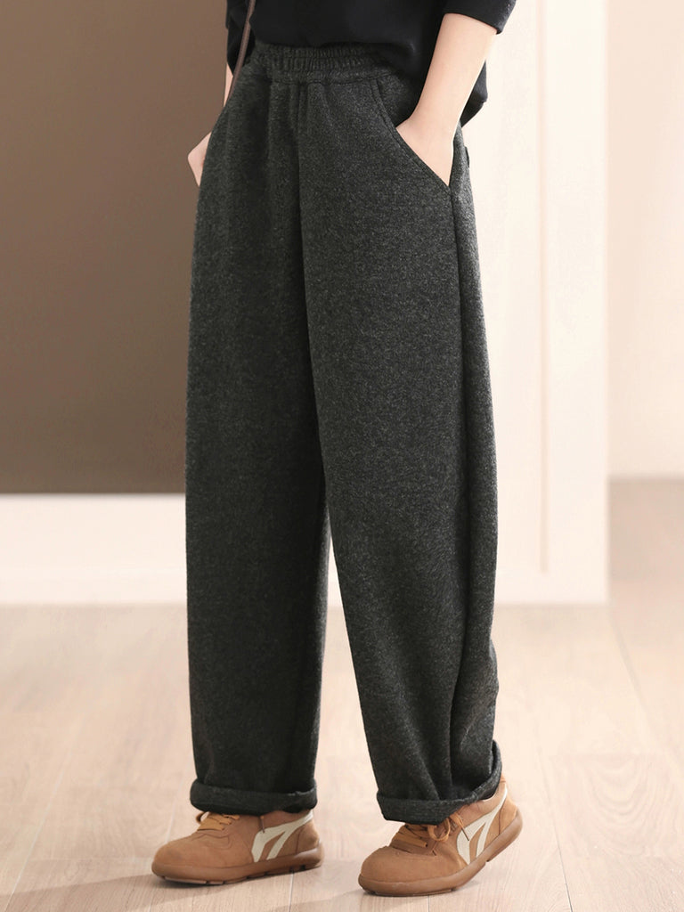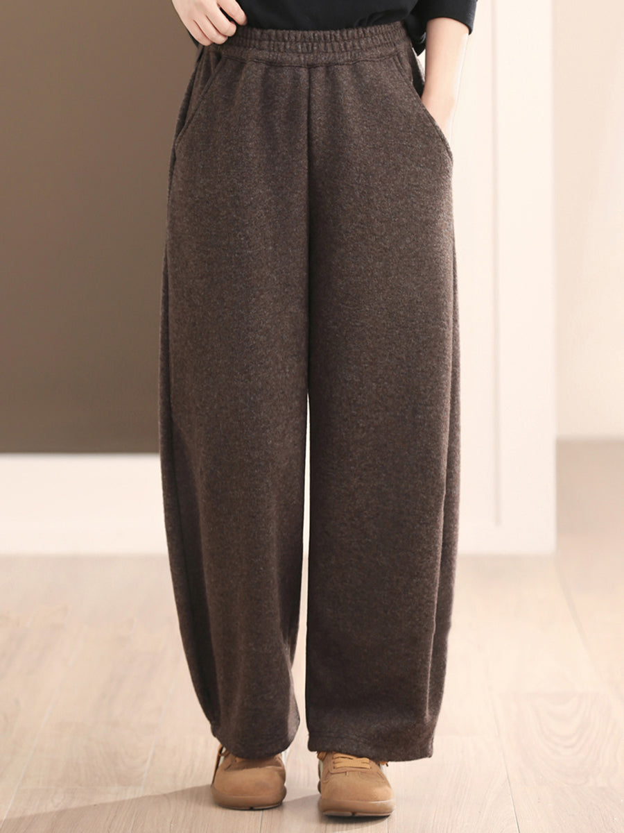 Pantalones anchos con forro polar de color puro retro de invierno para mujer