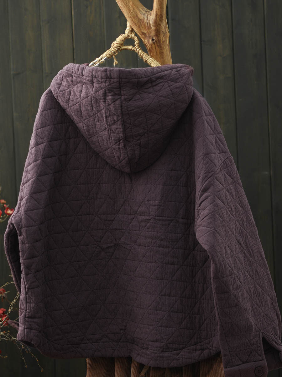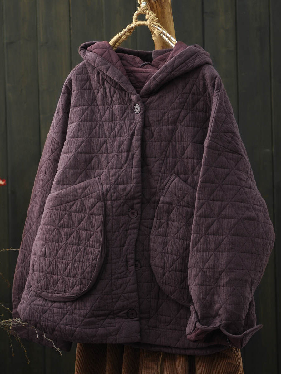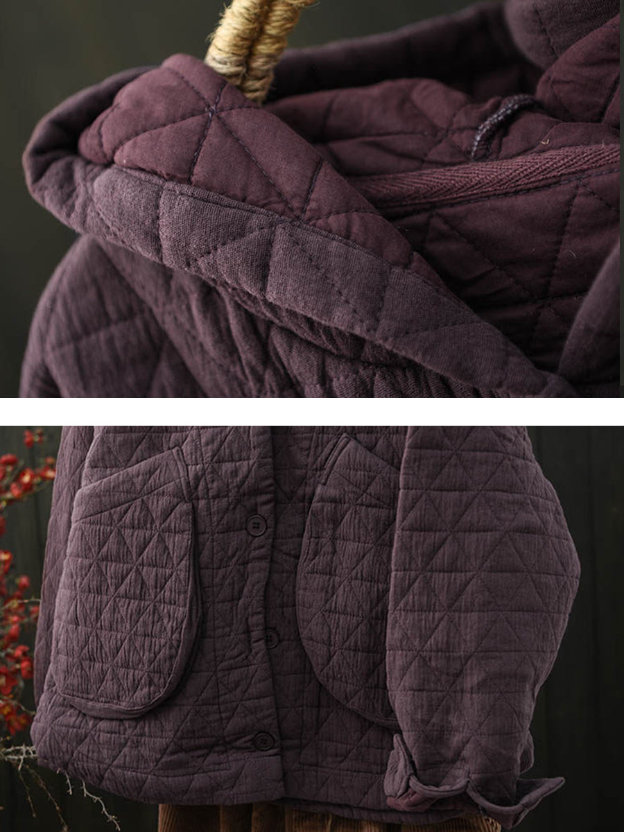 Abrigo acolchado de algodón con capucha de color puro retro de invierno para mujer