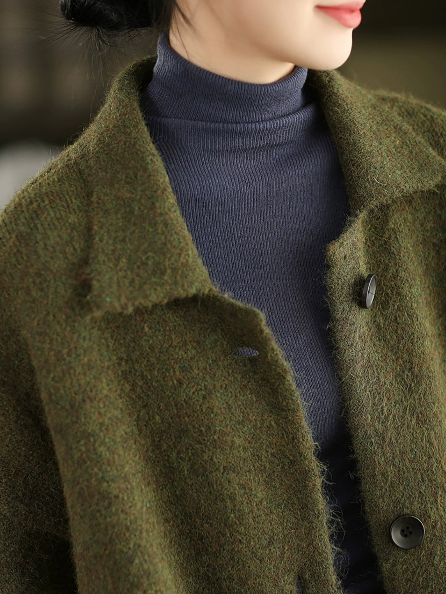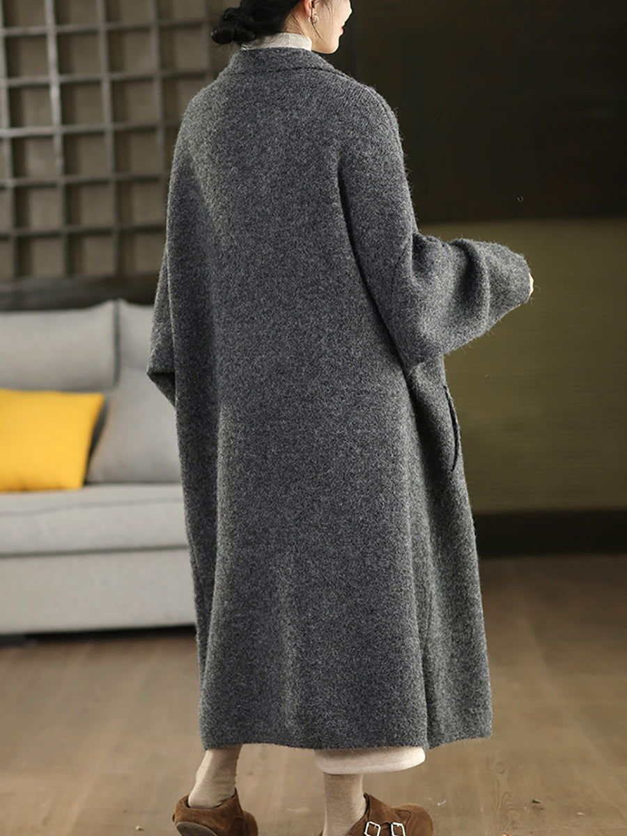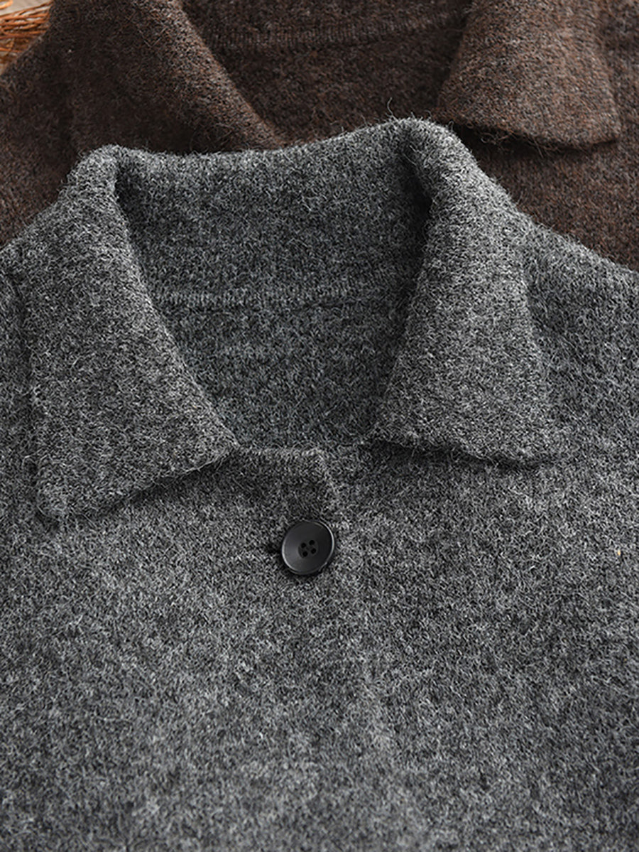 Abrigo tipo suéter retro de color puro de invierno para mujer
