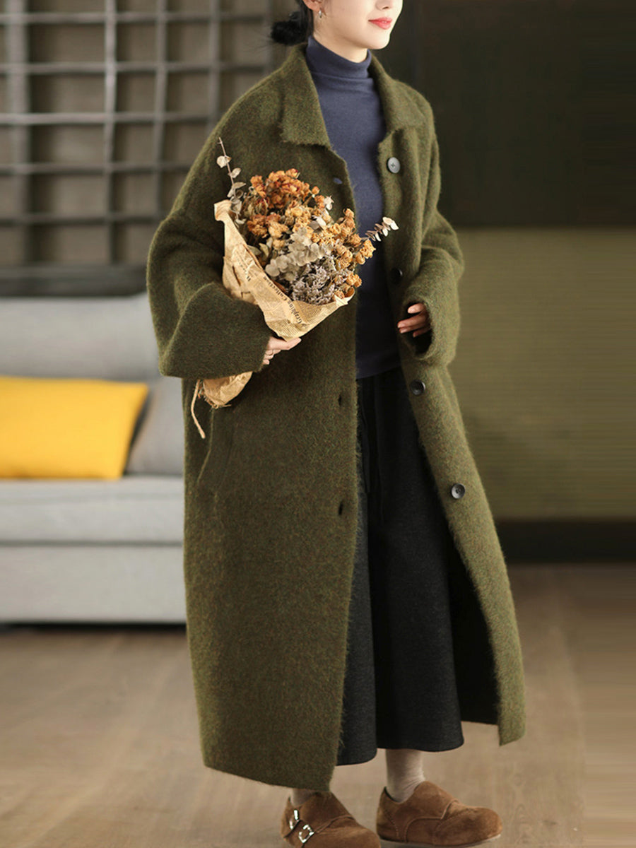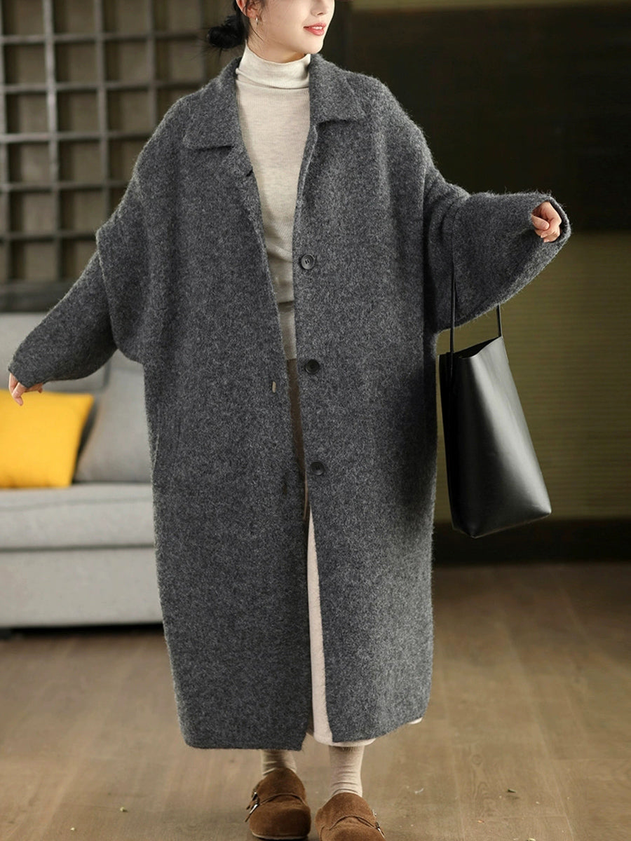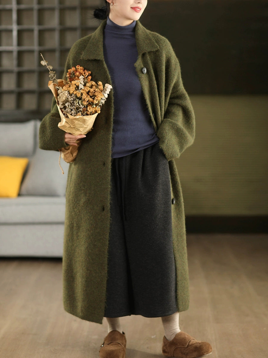 Abrigo tipo suéter retro de color puro de invierno para mujer