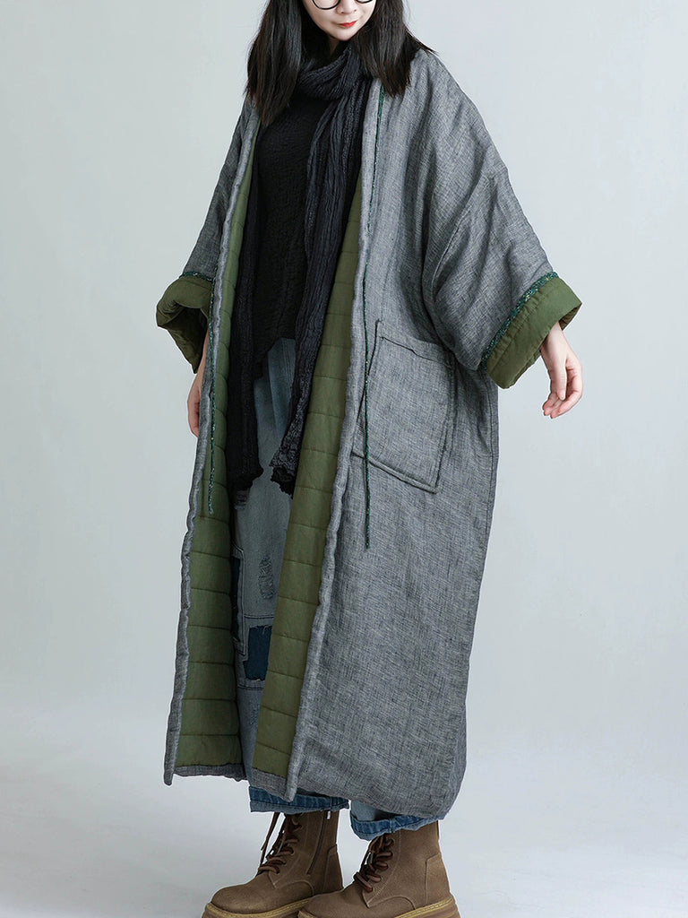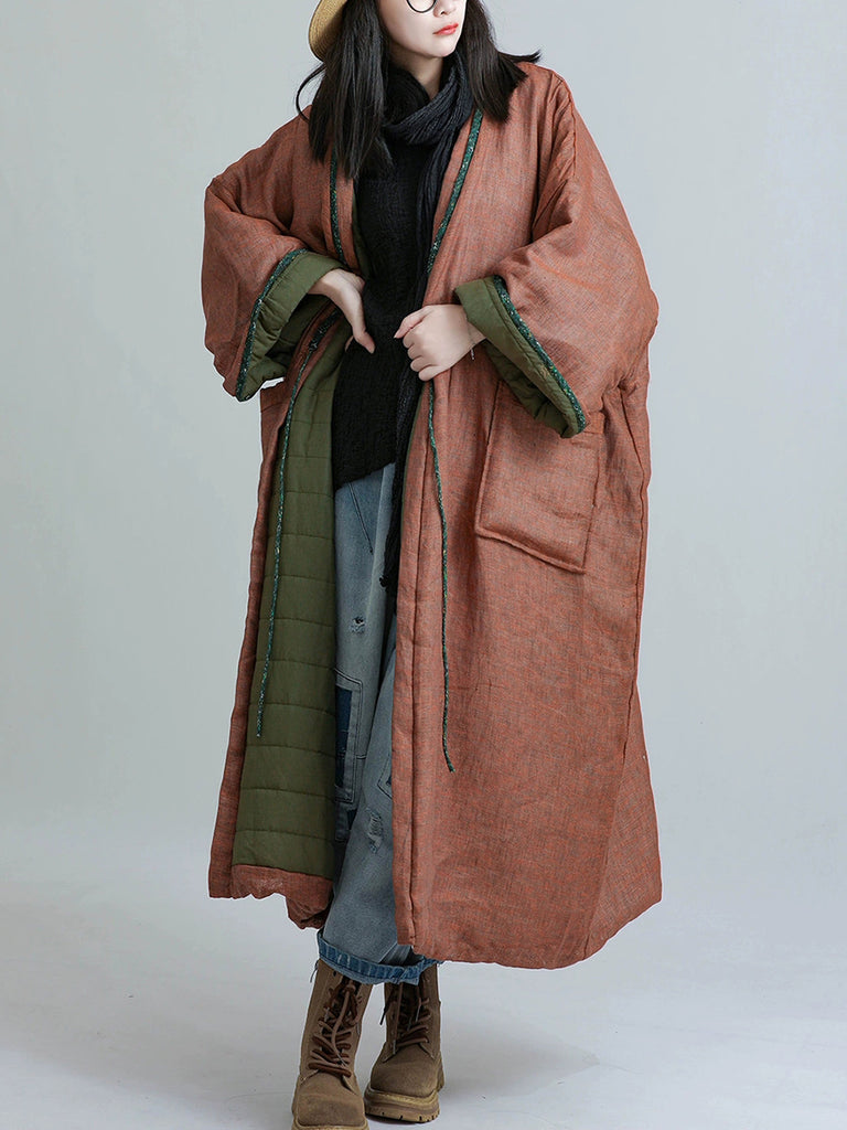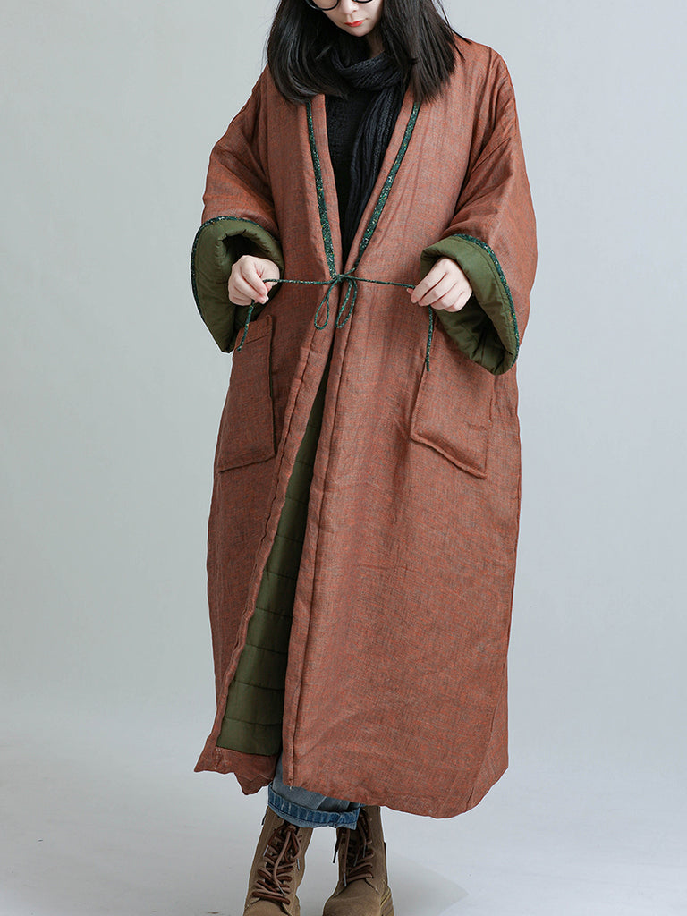 Abrigo acolchado con cuello en V de color puro retro de invierno para mujer