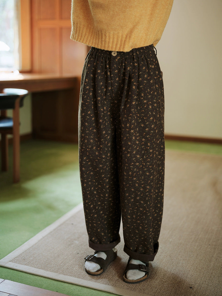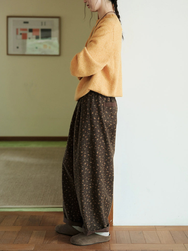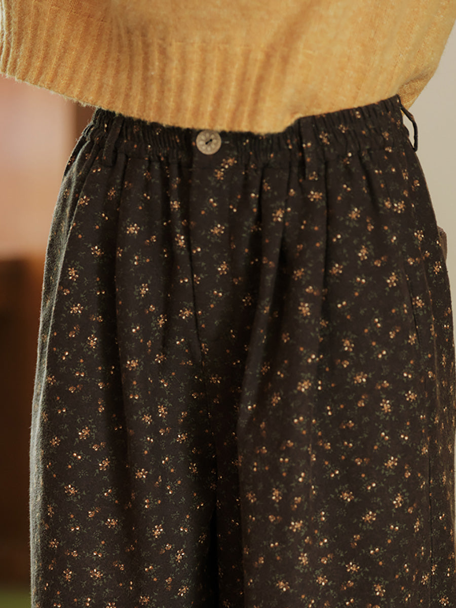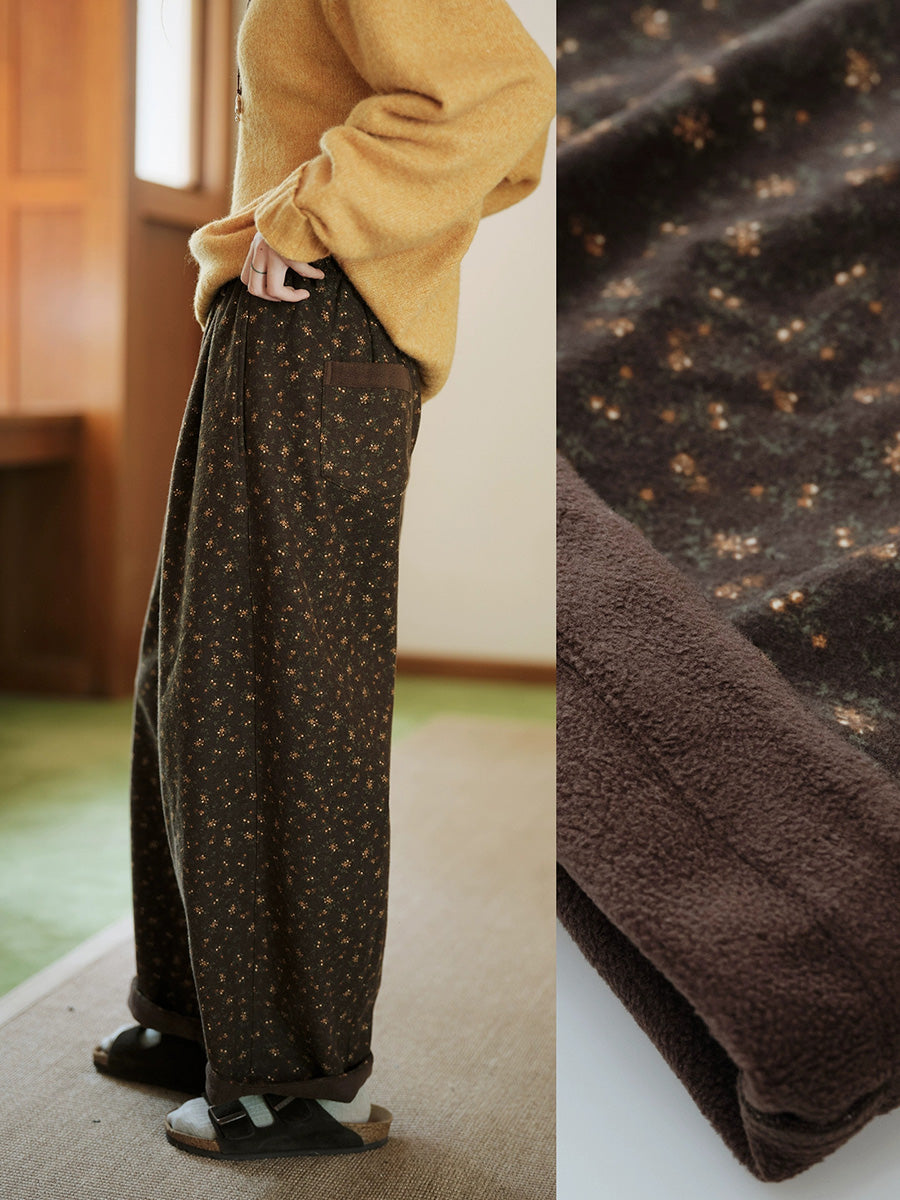 Pantalones tipo harem de invierno para mujer, estilo vintage floral, con forro polar.