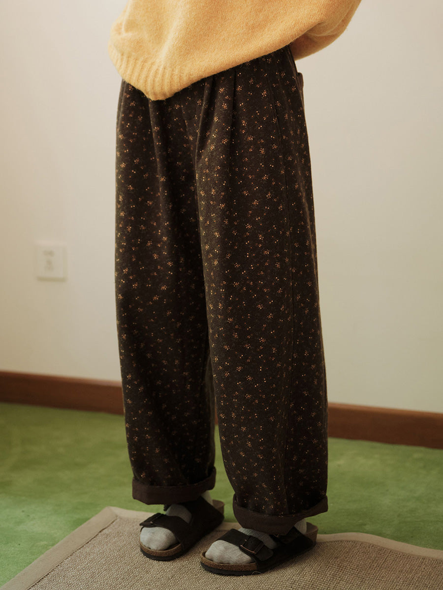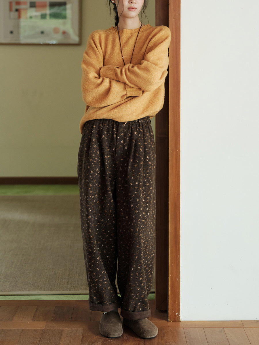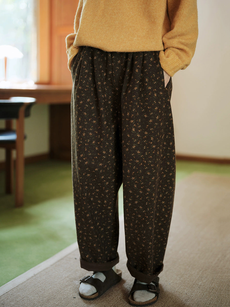 Pantalones tipo harem de invierno para mujer, estilo vintage floral, con forro polar.