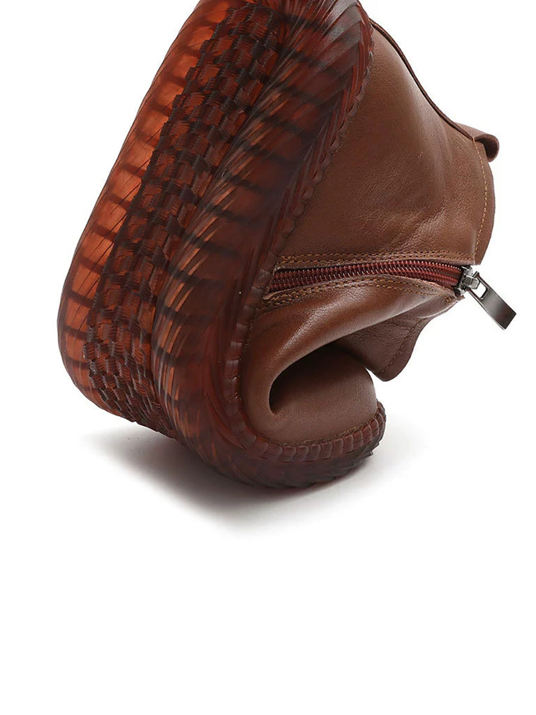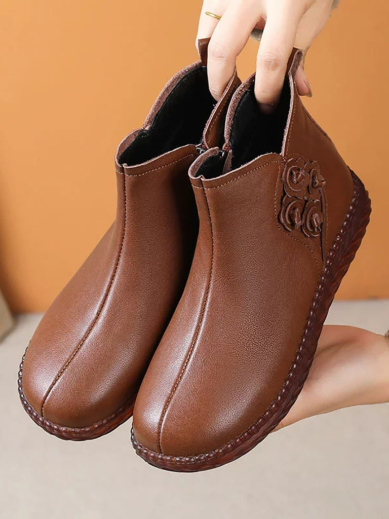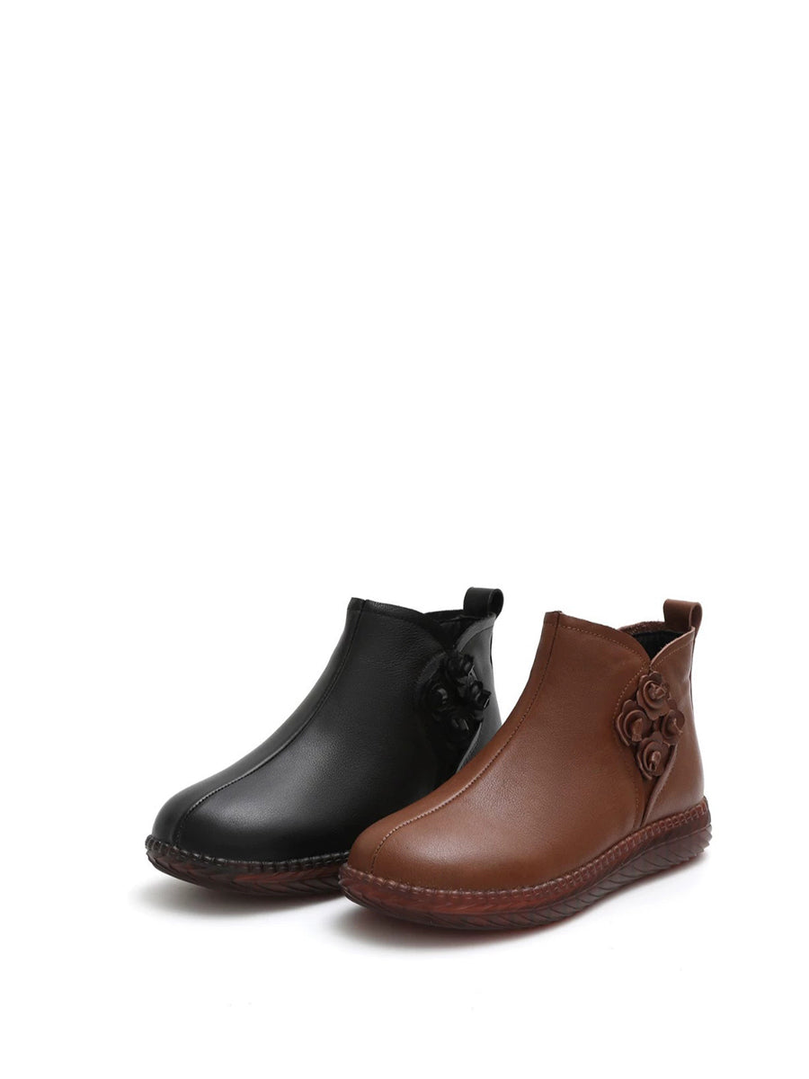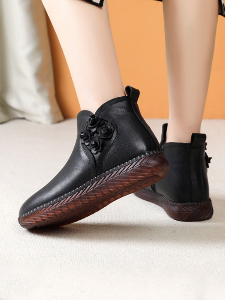 Botas de invierno vintage de piel con flores y forro polar para mujer