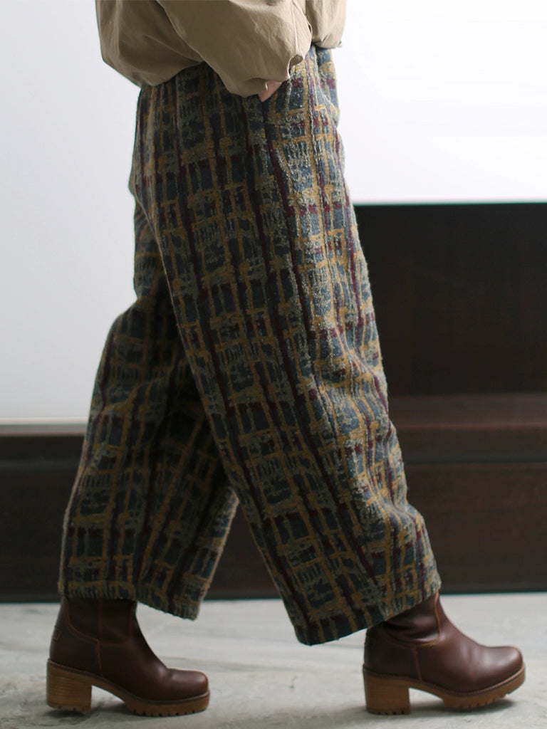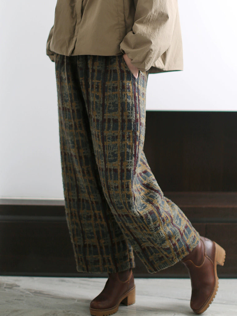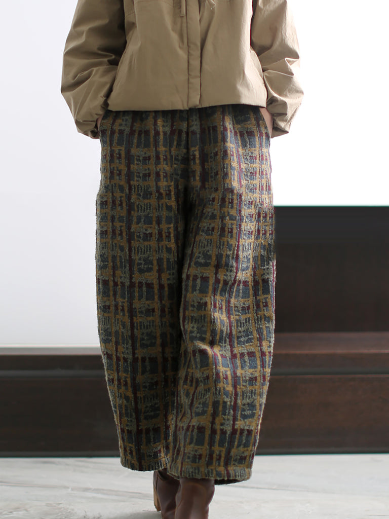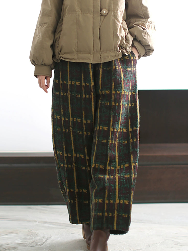 Pantalones harén de lana jacquard a cuadros vintage de invierno para mujer