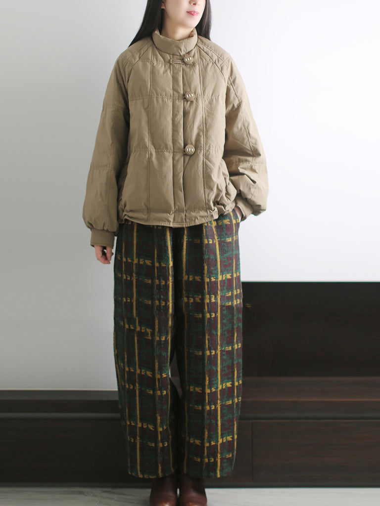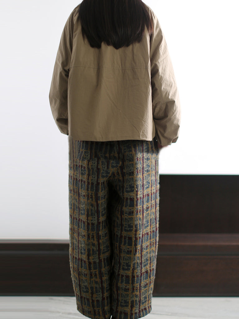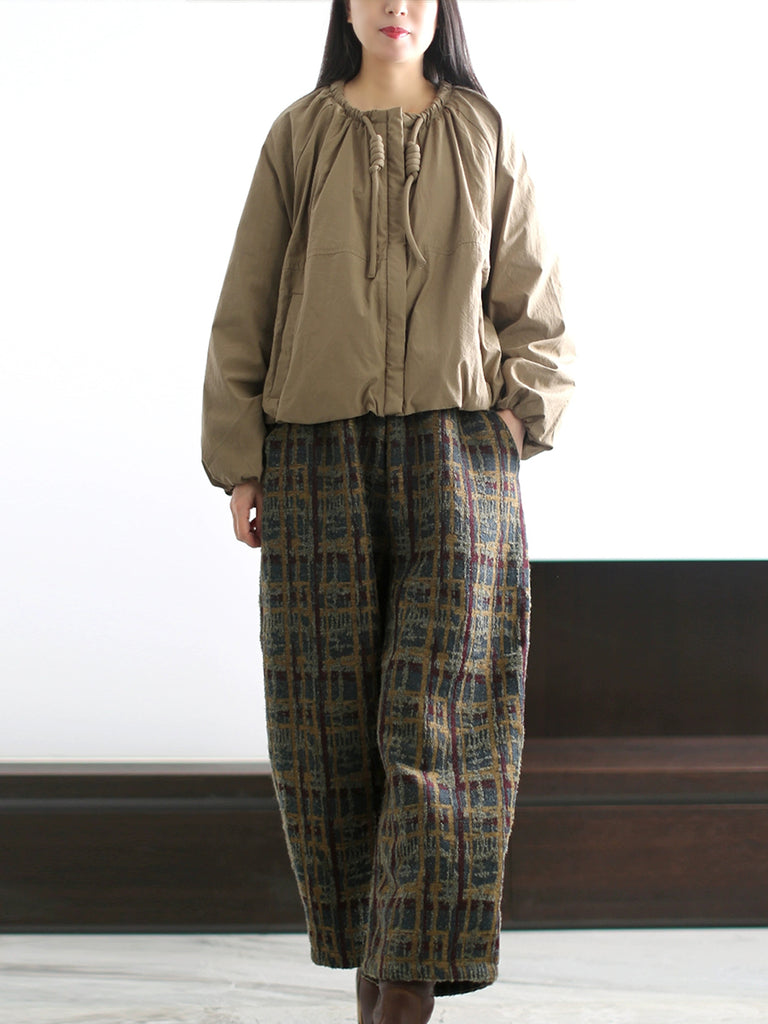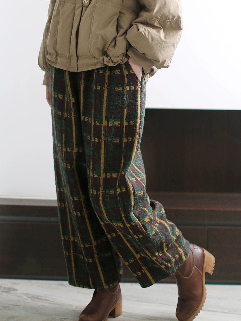 Pantalones harén de lana jacquard a cuadros vintage de invierno para mujer