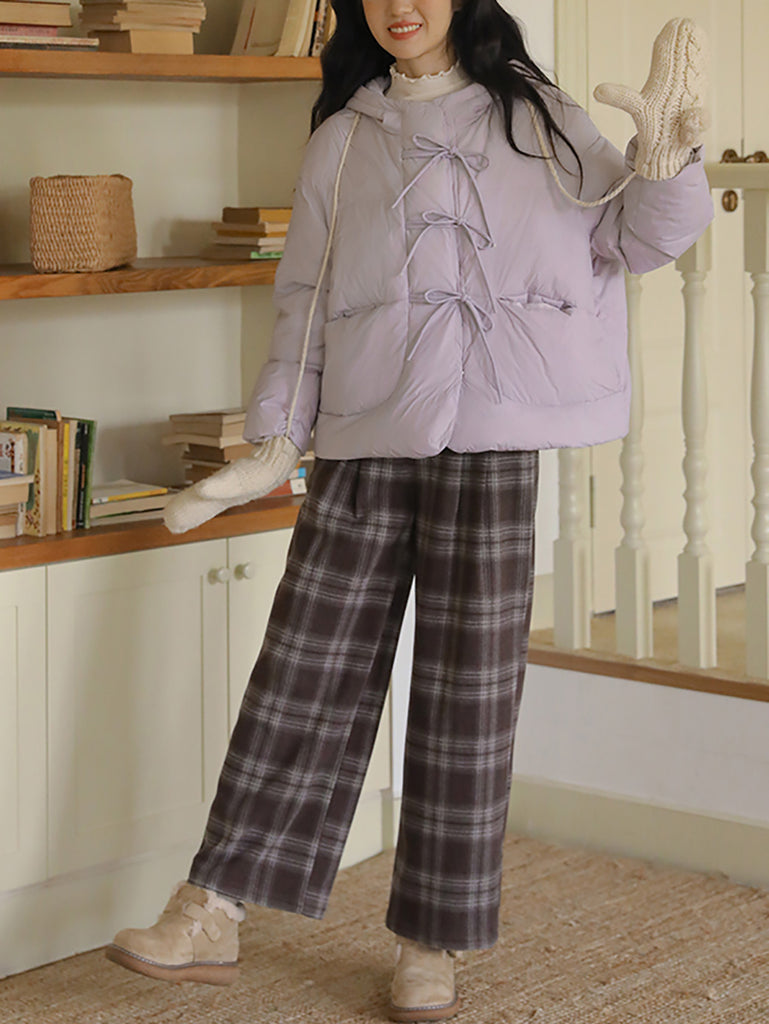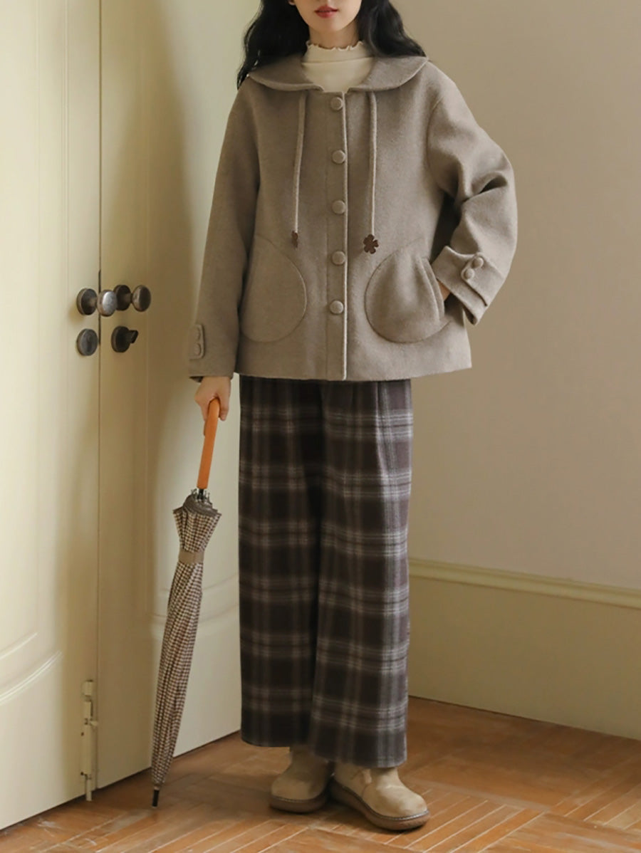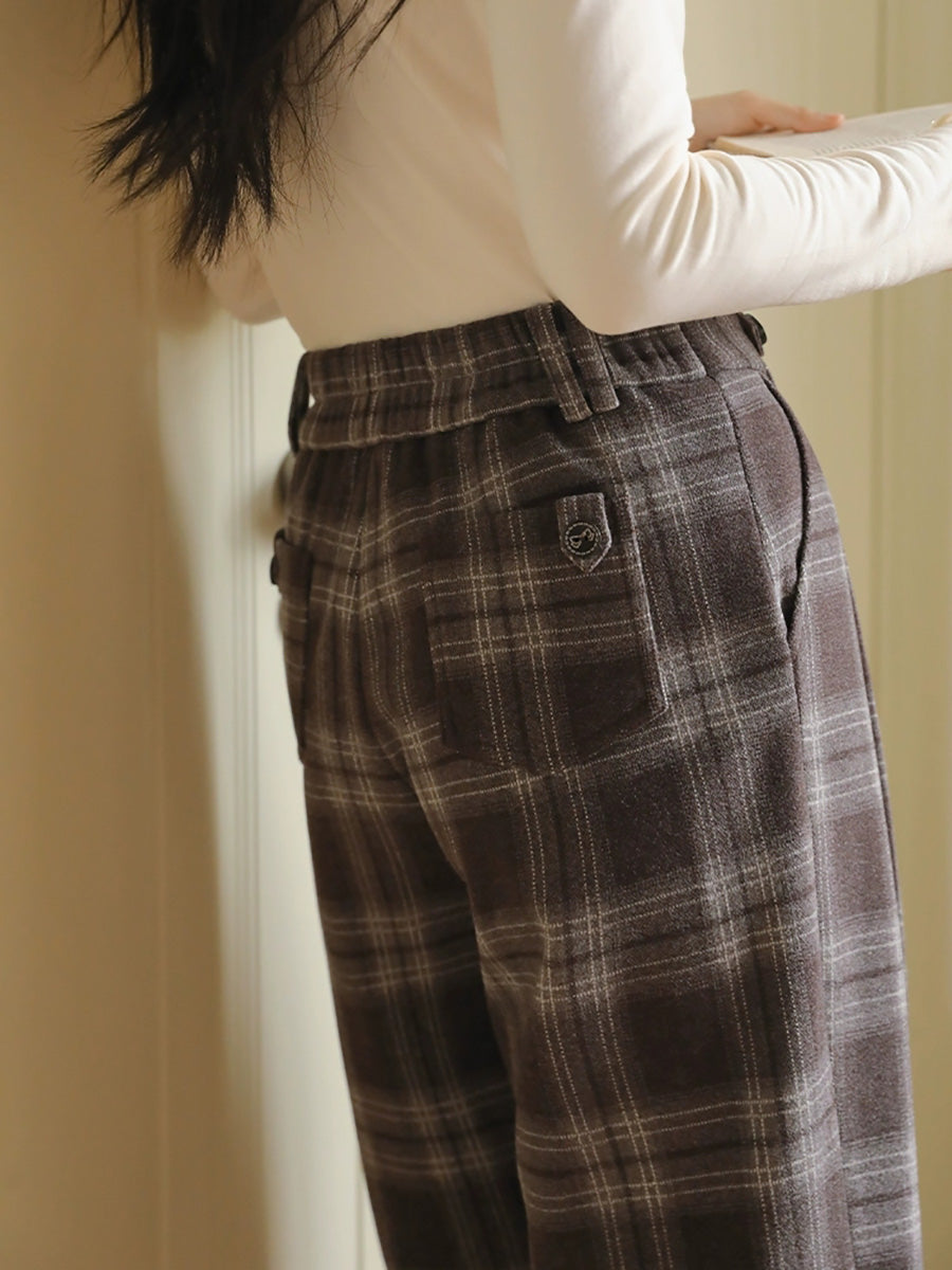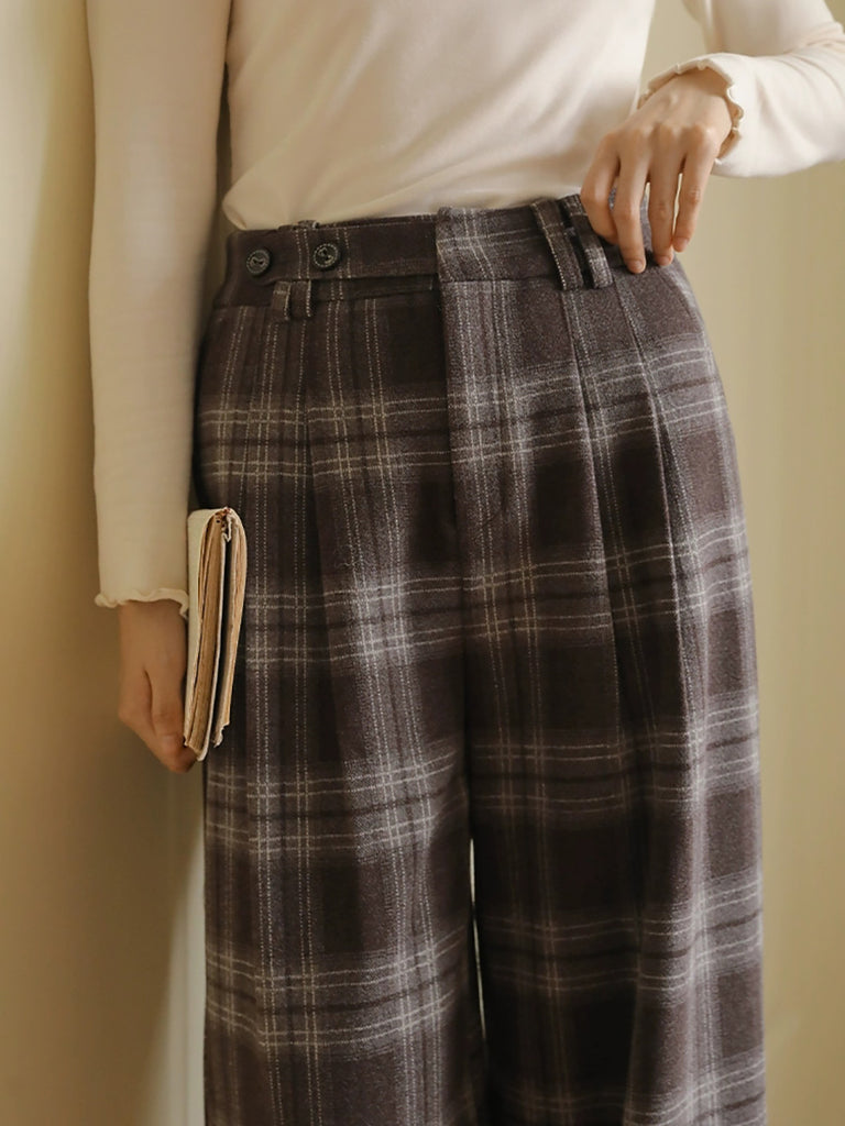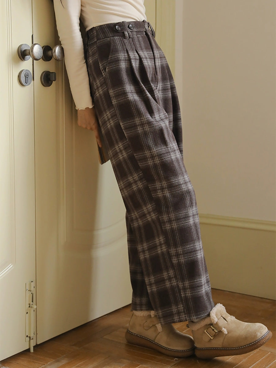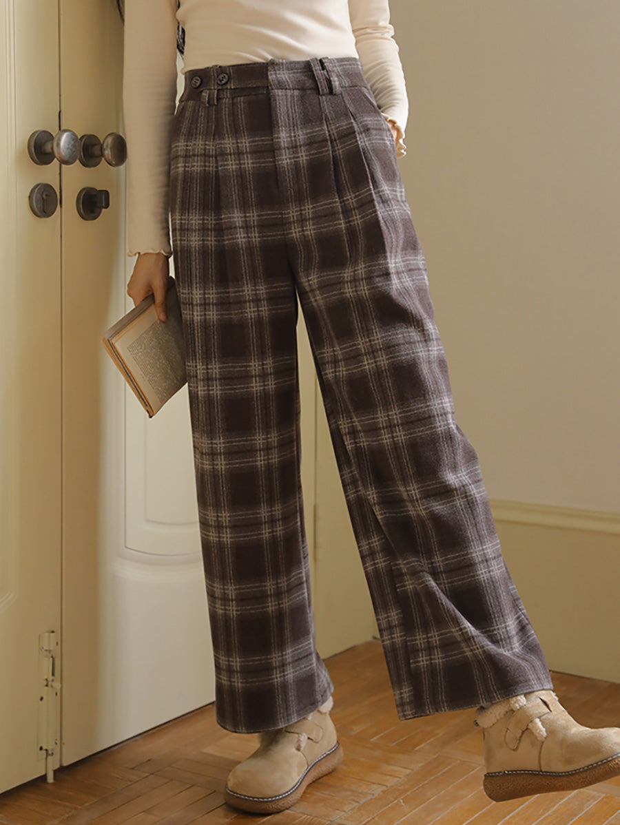Pantalones rectos de cuadros vintage para mujer, ideales para el invierno.