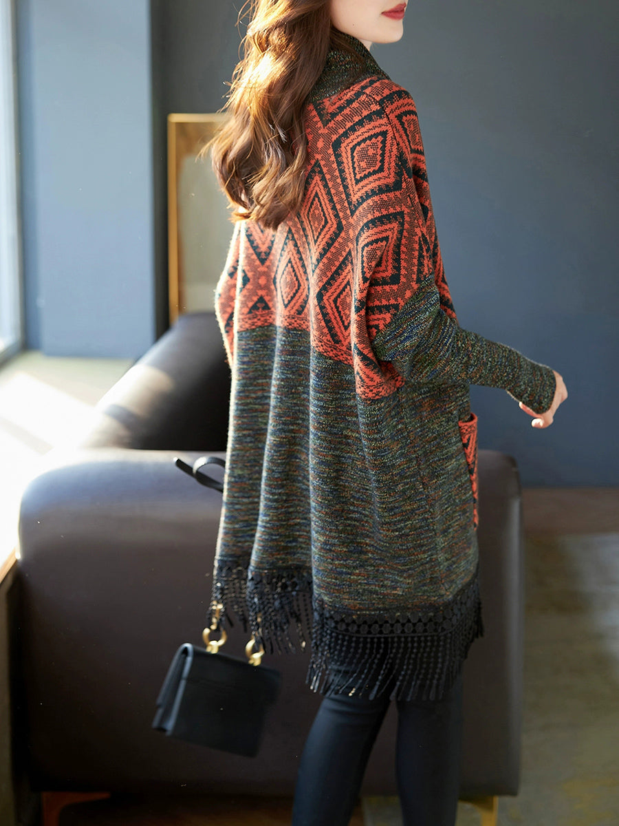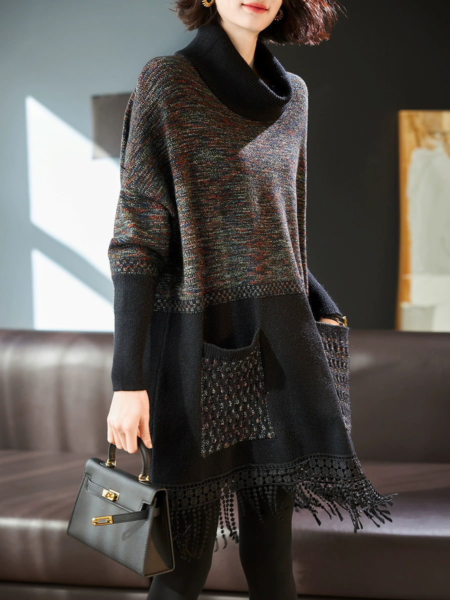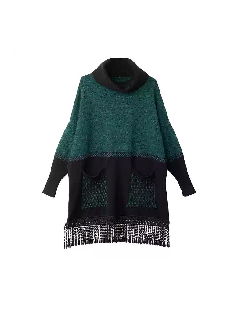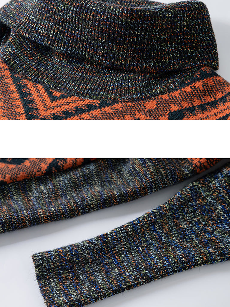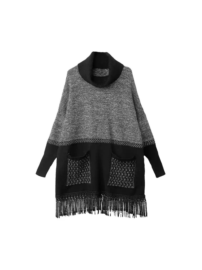 Suéter de cuello alto con borlas y diseño vintage de rombos para mujer (invierno)