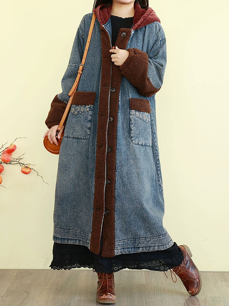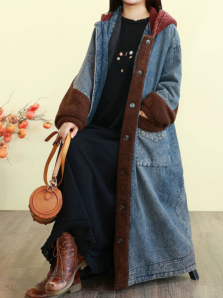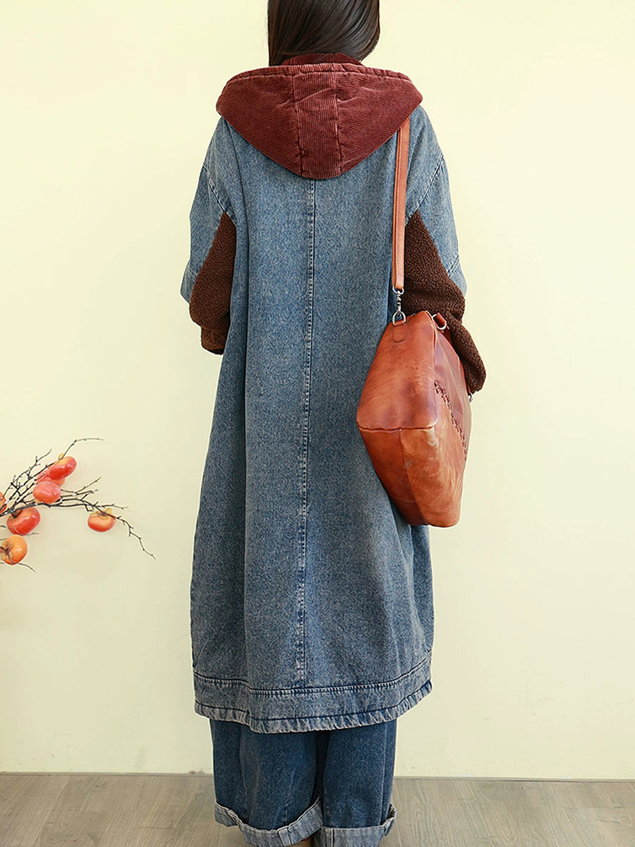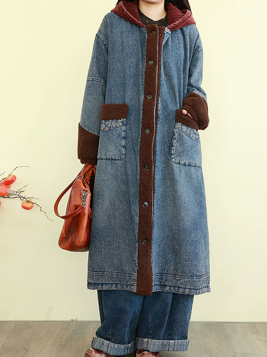 Abrigo de invierno vintage para mujer, estilo vaquero con capucha y acolchado, de mezclilla con detalles deshilachados.