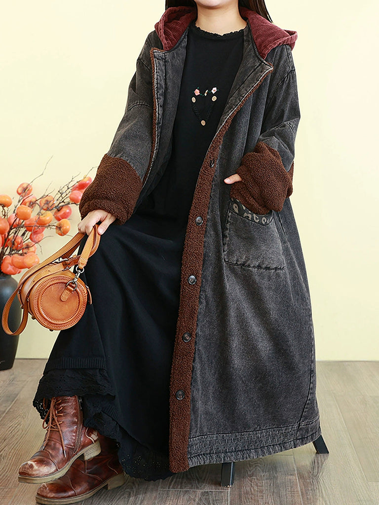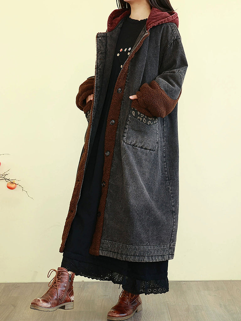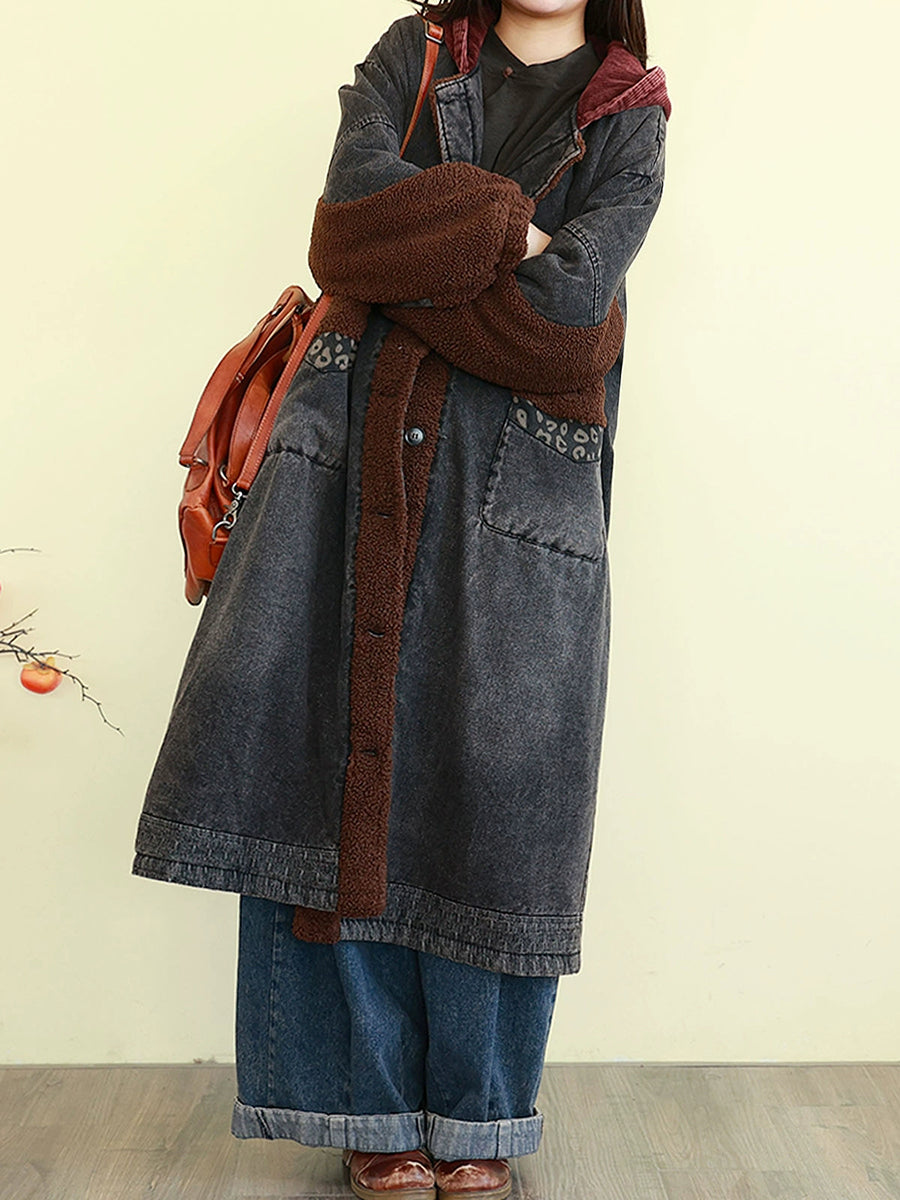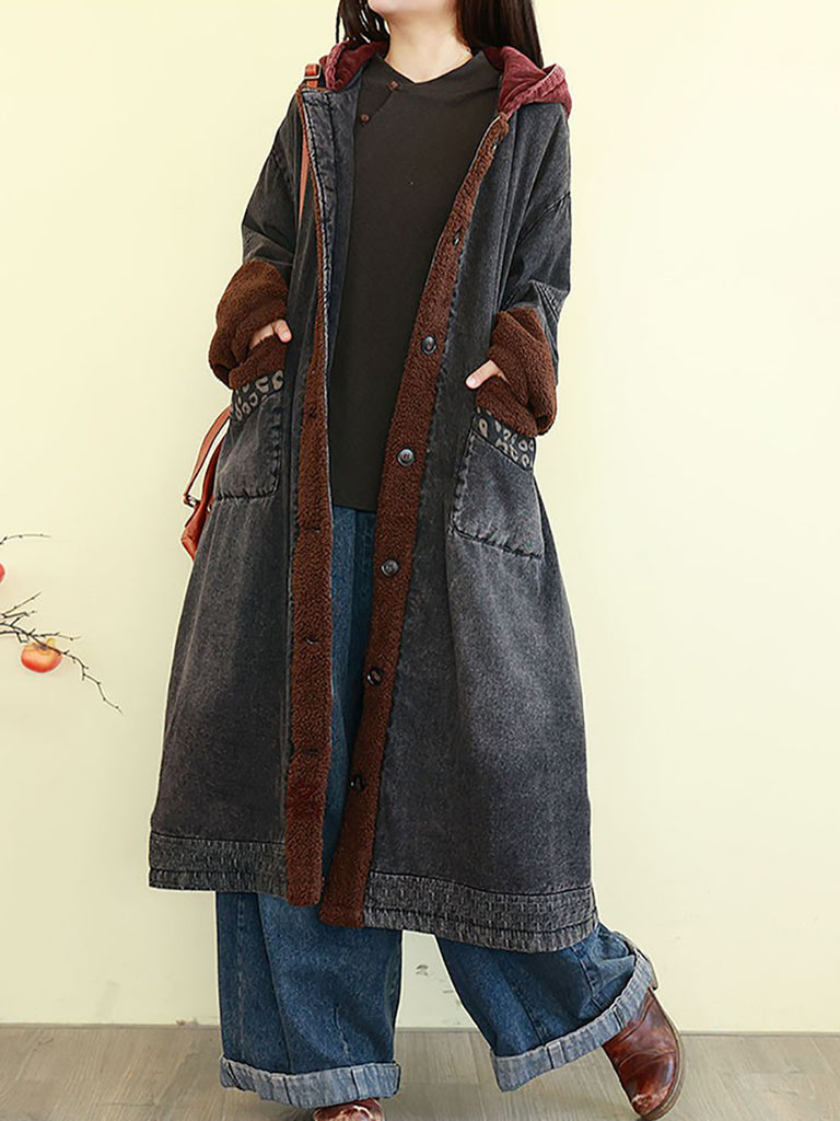 Abrigo de invierno vintage para mujer, estilo vaquero con capucha y acolchado, de mezclilla con detalles deshilachados.