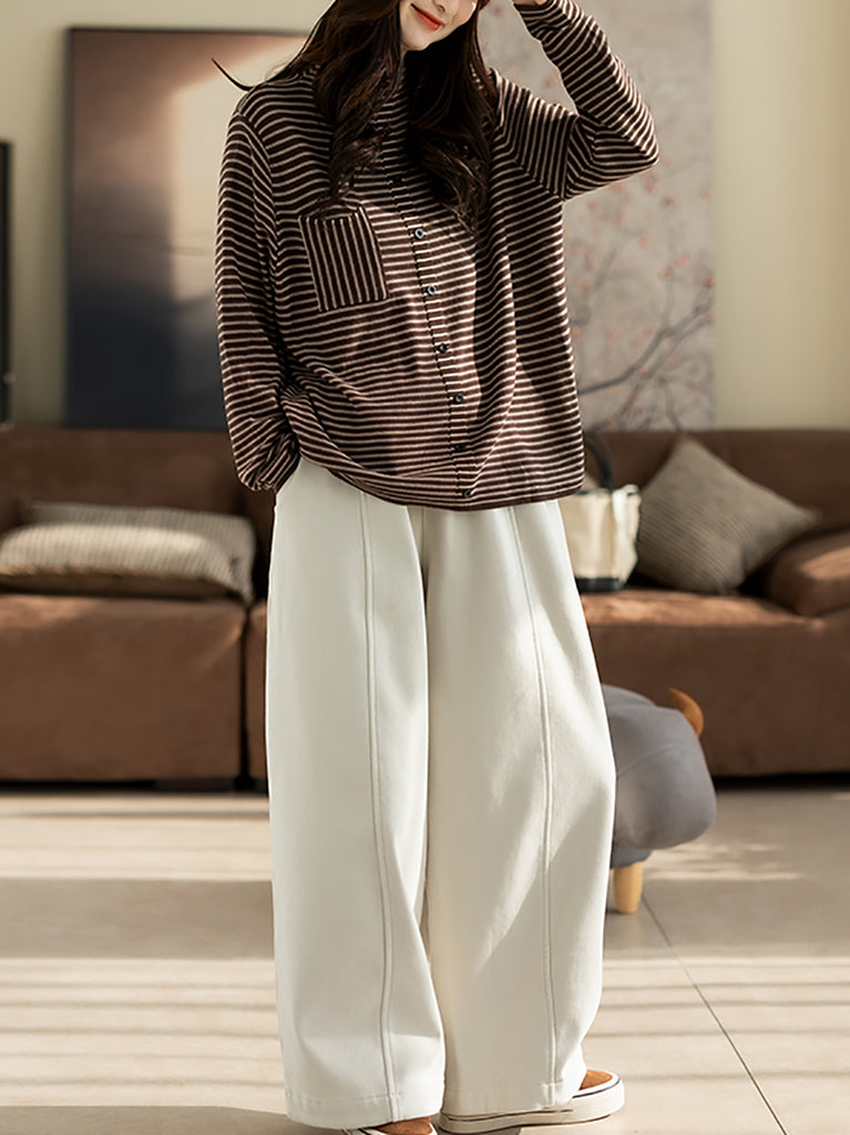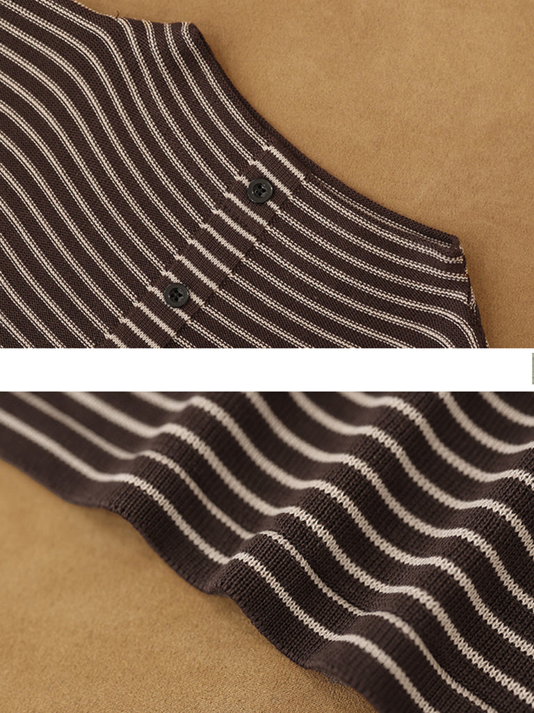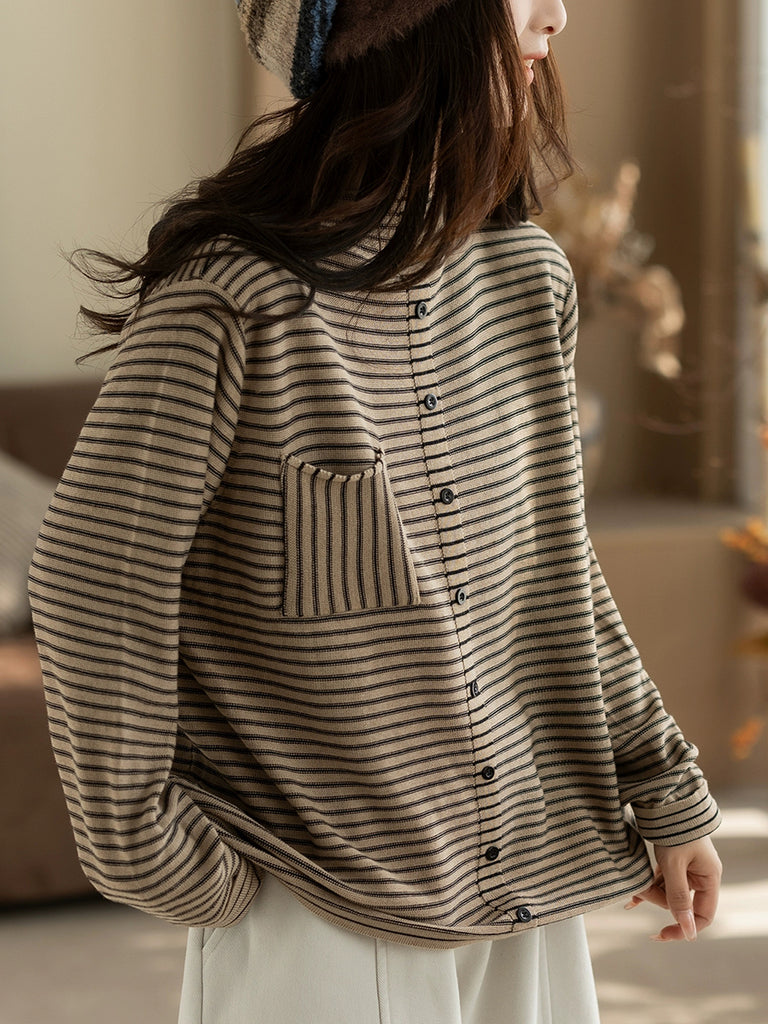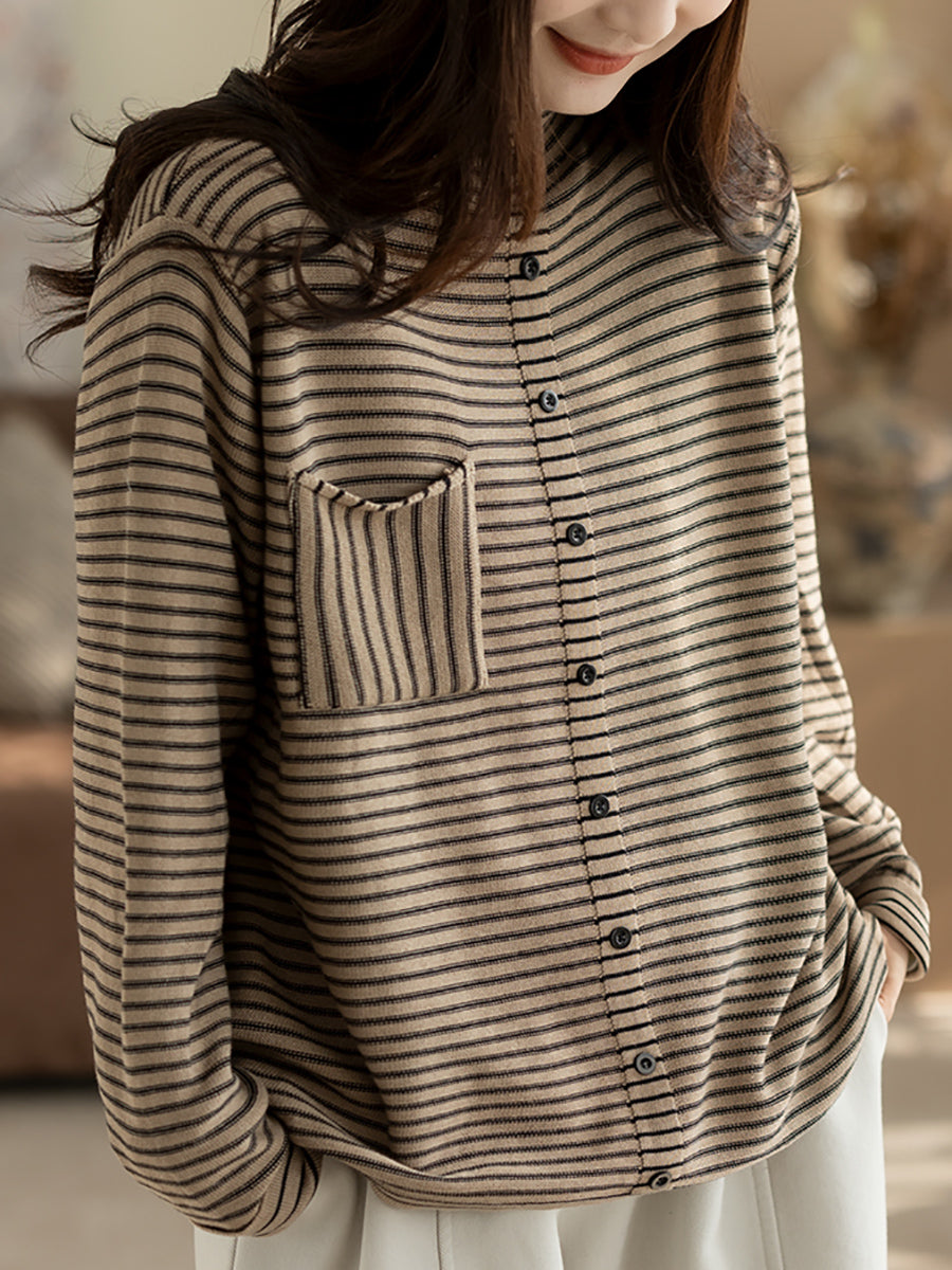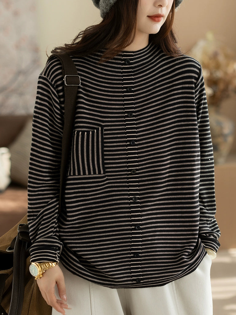 Blusa de cuello alto a rayas vintage para mujer, ideal para el invierno.